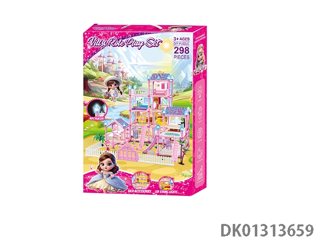 灯光夜光DIY过家家大别墅玩具套装(DIY拼装女孩梦想屋豪宅)298PCS
