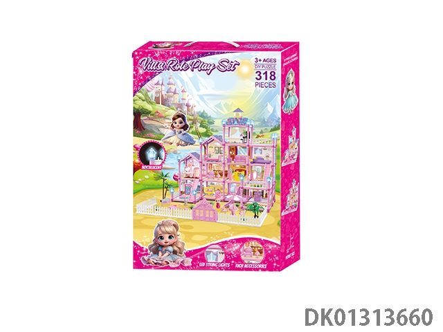 灯光夜光DIY过家家大别墅玩具套装(DIY拼装女孩梦想屋豪宅)318PCS