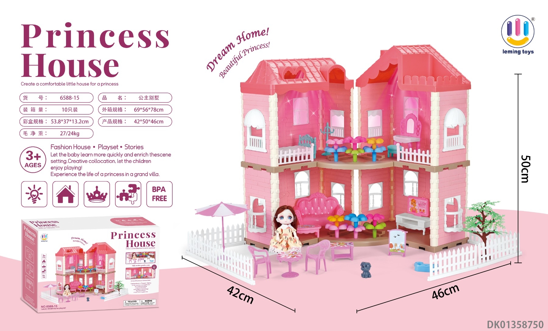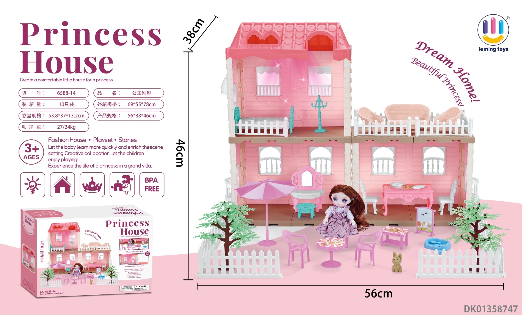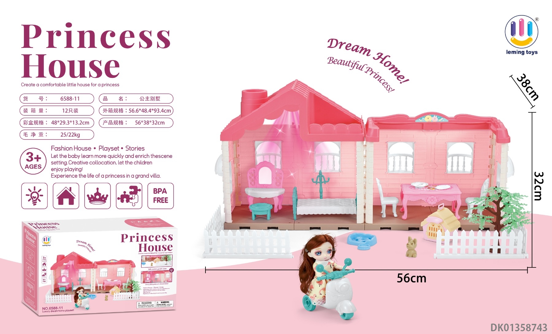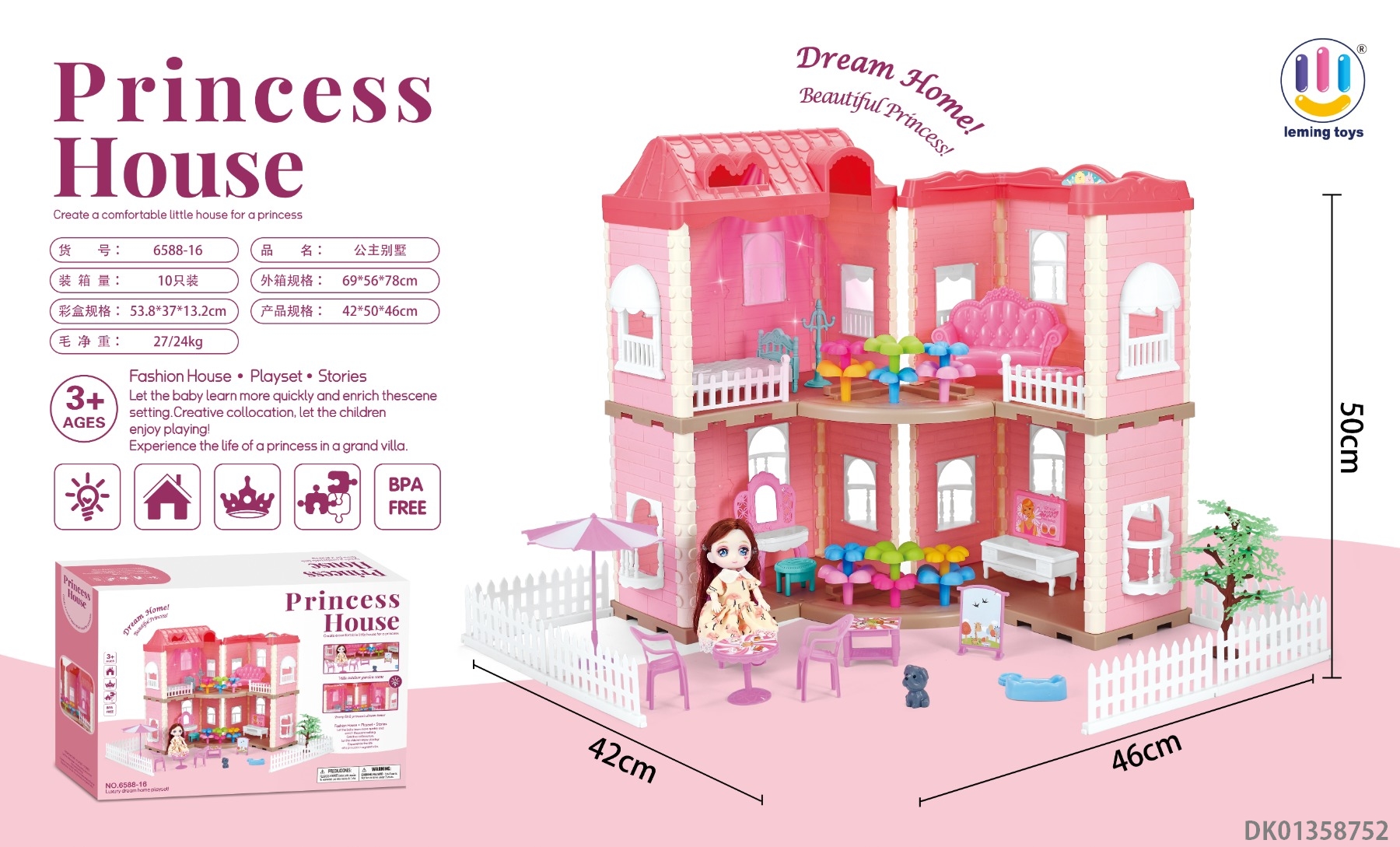 粉-4房别墅玩具【无灯光】