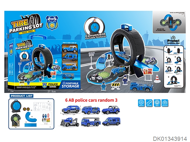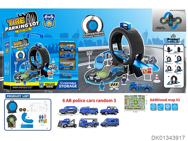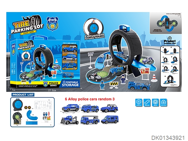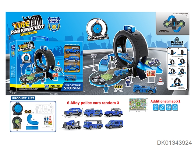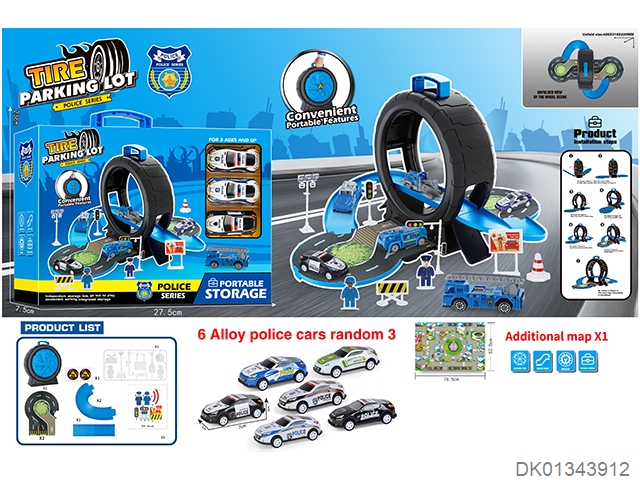 警察轮胎场景收纳盒(3合金车+地图)