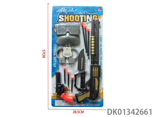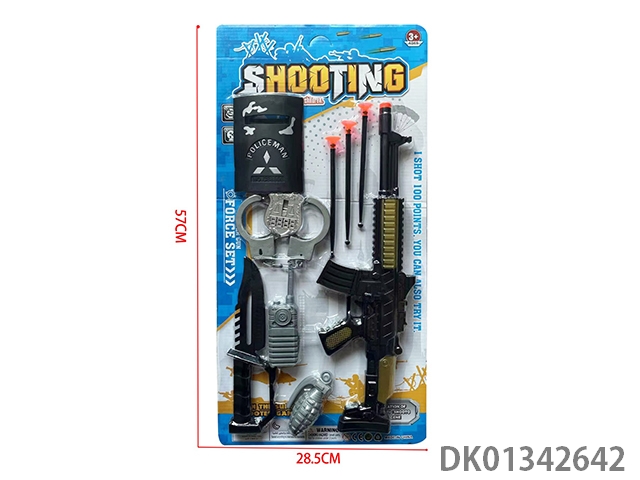 枪片警察套-EVA吸盘软弹冲锋枪乒乓球枪配刀、对讲机和手铐
