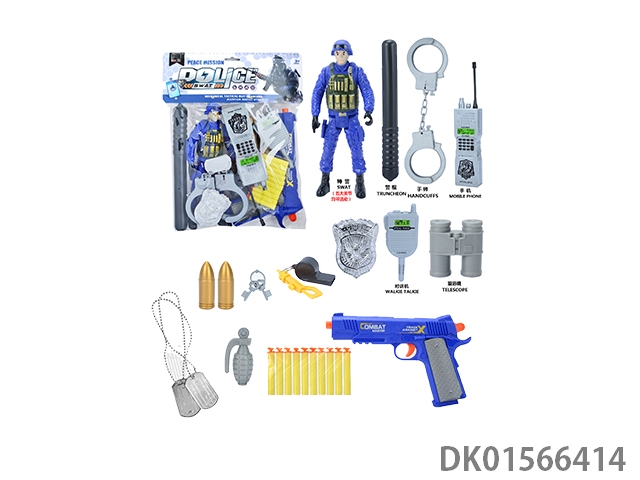 警察套(军人+对讲机+警棍+手铐+警徽+望远镜+口哨+吊牌+金子弹*3+五四软弹枪)