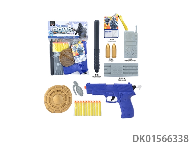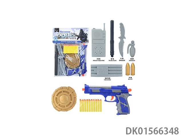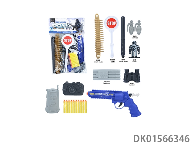 警察套(子弹链条+手铐+警棍+停车牌+金子弹+对讲机+指南针+手雷+定时炸弹+连体枪靶+水壶+望远镜+枪靶+子弹夹+五四软弹枪)