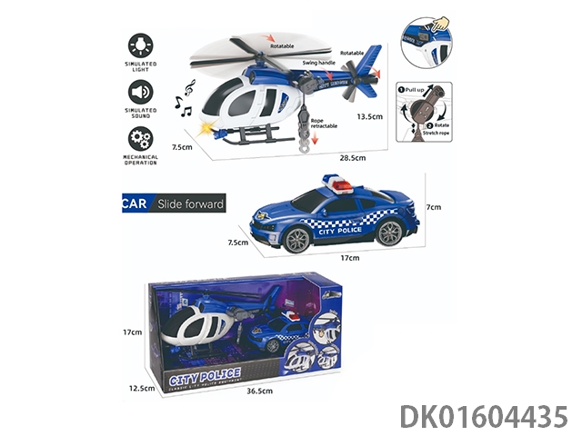 城市警察套装:声光直升机+警车(包电3*AG13)
