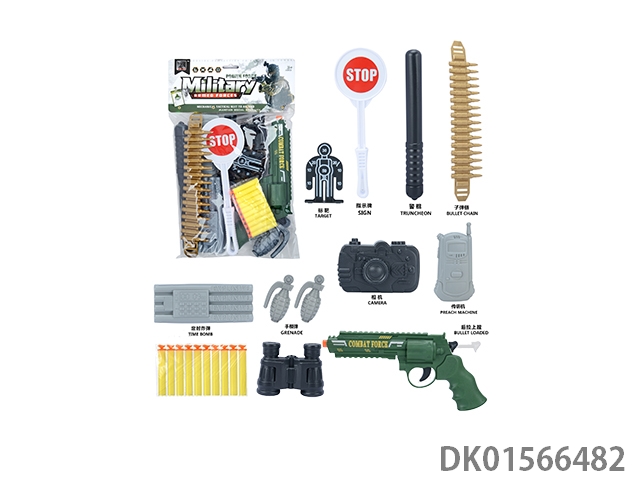 军事套(人靶+停车牌+警棍+子弹链条+定时炸弹+手雷*2+相机+对讲机+子弹夹+望远镜+左轮软弹枪)