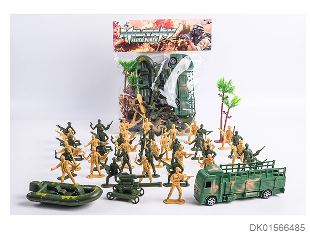 军事套(军人+警棍+刀+手铐+警徽+对讲机+望远镜+吊牌+金子弹*2+手雷+相机+口哨+五四软弹枪)