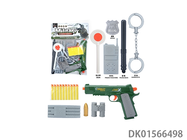 军事套(圆枪靶+手铐+吊牌+子弹夹+五四软弹枪)