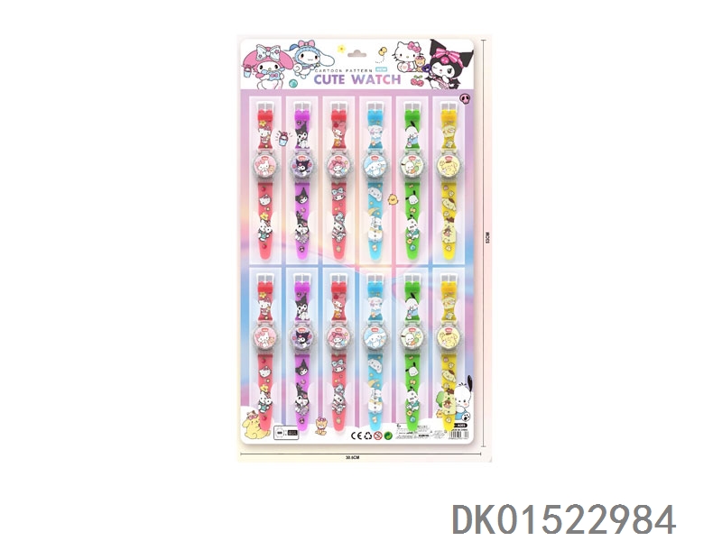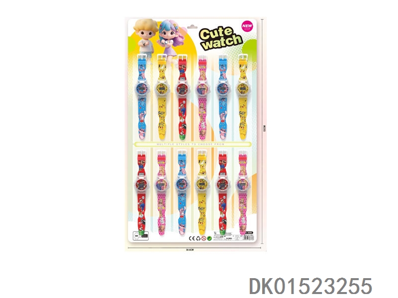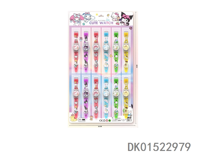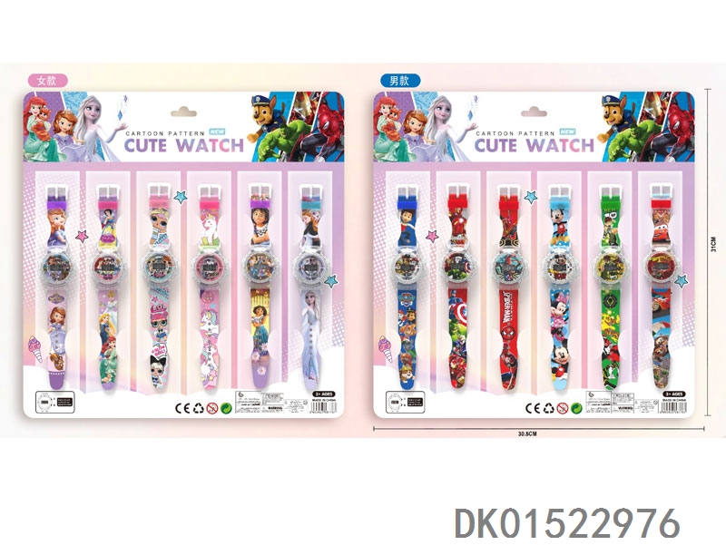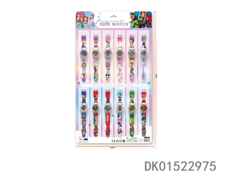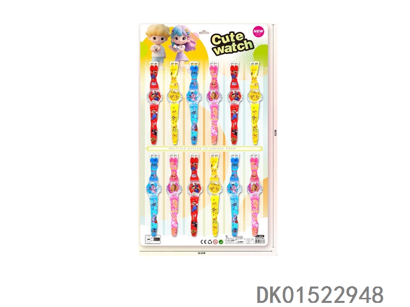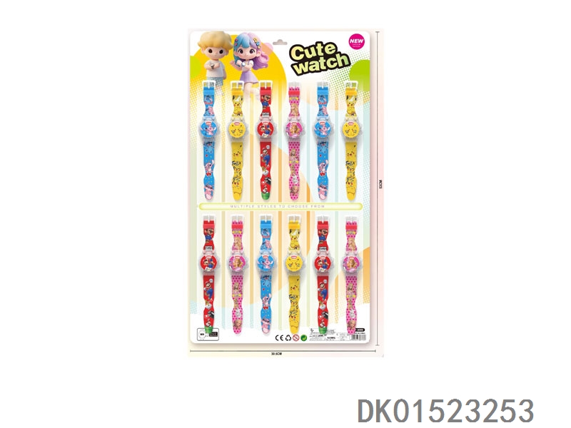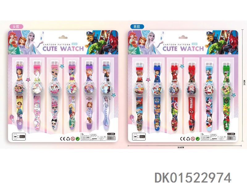 12款翻盖电子圆形手表配彩带迷宫6只/板