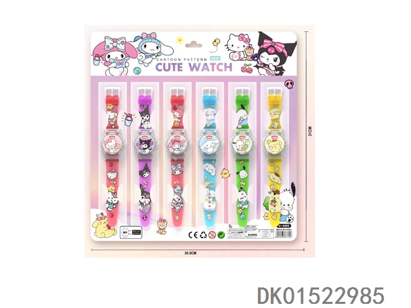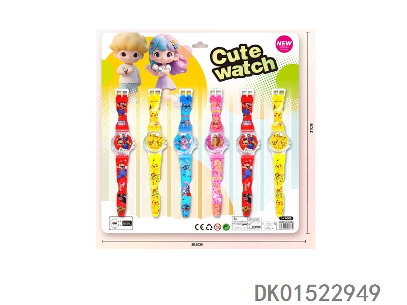 6款翻盖电子圆形手表配彩带迷宫6只/板
