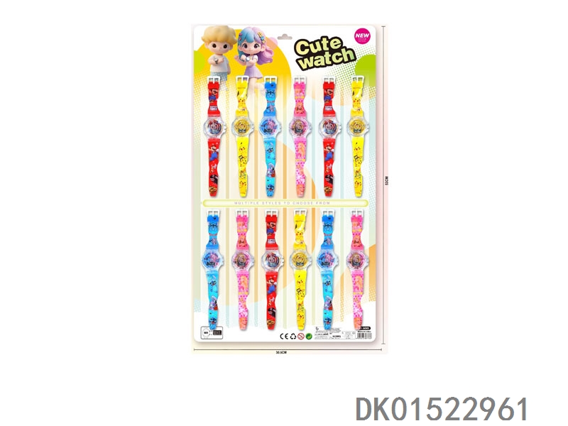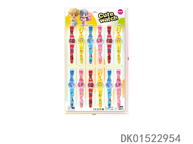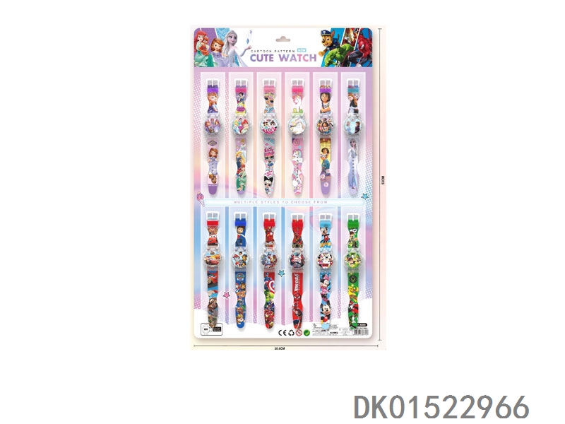 4款灯光音乐翻盖电子圆形手表配彩带图案12只/板