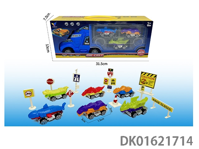 惯性货柜拖头+3只动物合金车(带路标)