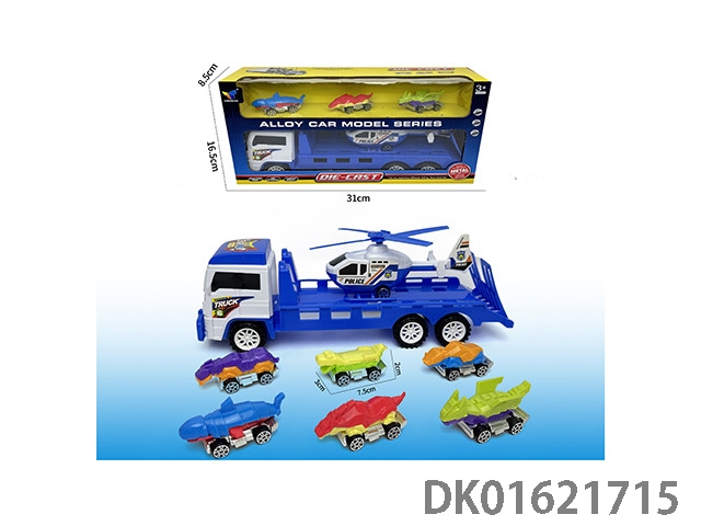 惯性拖头车+3只动物合金车套装