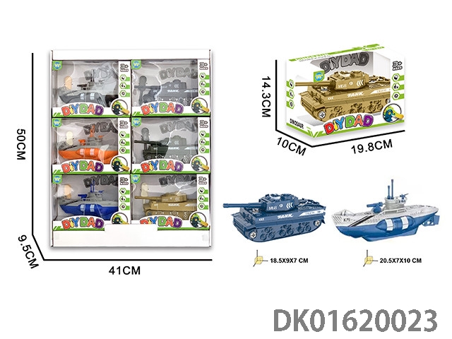 拆装惯性军事主题车(沙滩摩托/坦克/潜水艇)6只装