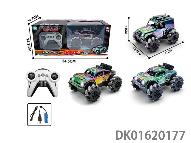 2.4G 七通特技遥控车带灯光(配3.7V锂电池 USB充电线)UV彩镀工艺