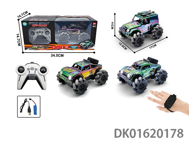2.4G 七通特技遥控车带灯光,配手表控制(配3.7V锂电池 USB充电线)UV彩镀工艺