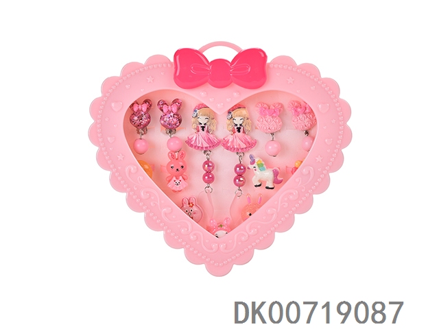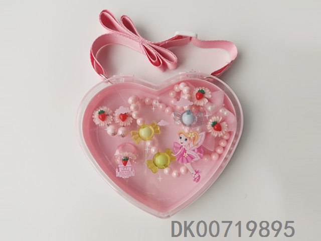 Love peach strap box jewelry set (necklaces and earrings and hairpins and rings) flowers