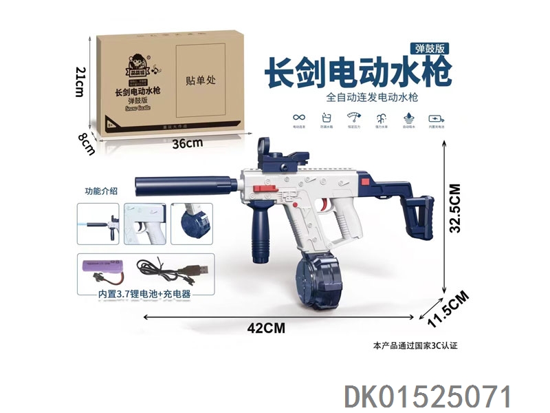 Uzi long sword water gun drum edition (lithium battery data cable, 1 drum and 1 clip)