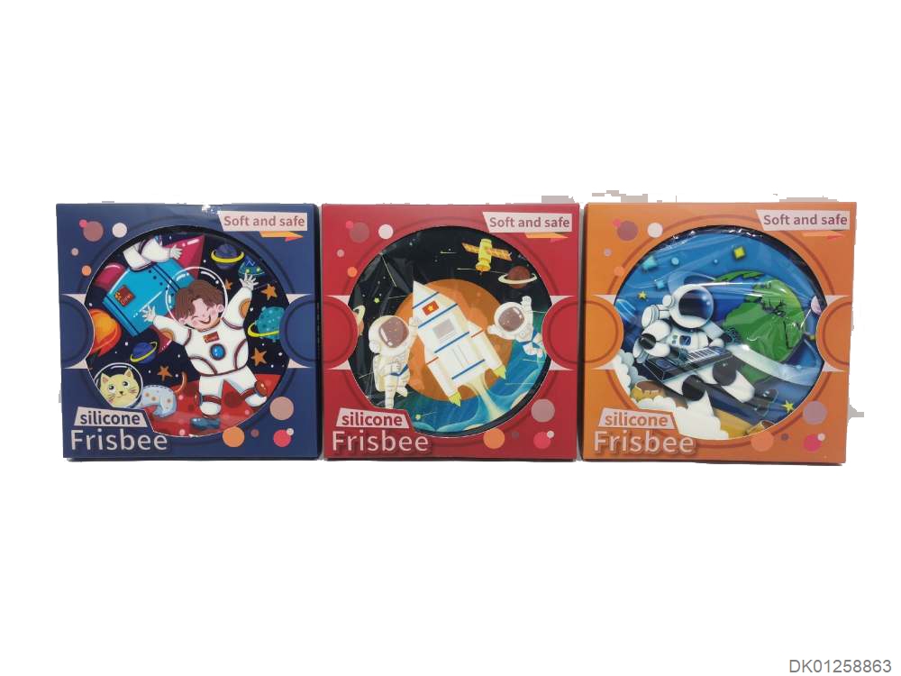 Children’s outdoor soft frisbee with cute bear blue in the air