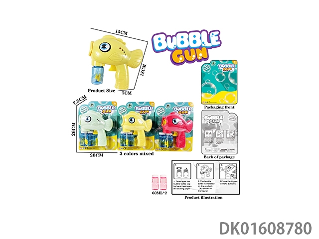 Automatic water filling inertia real color big eye fish bubble gun with 2 * 60ml bubble water