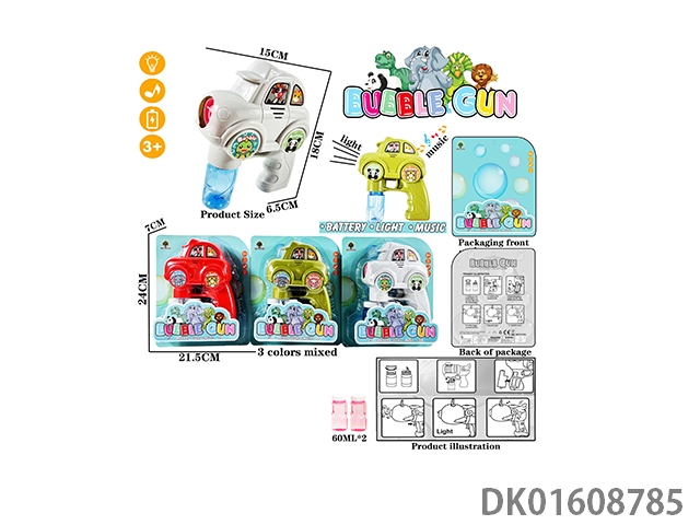 ABS cartoon car electric bubble gun with lights and music, 2 * 60ml bubble water (not included)