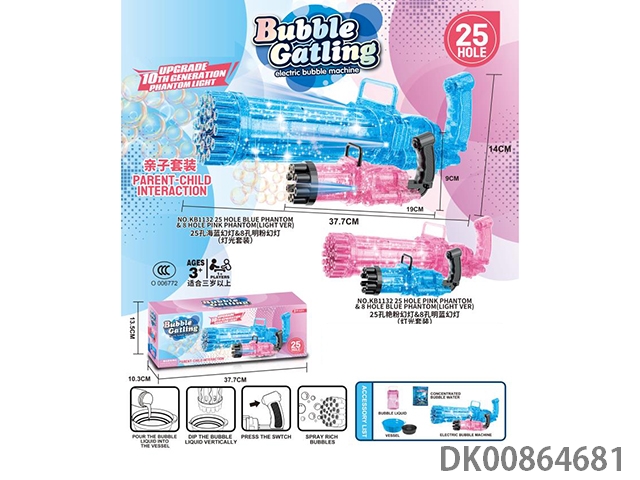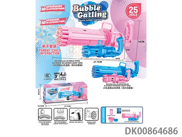 25 Hole brilliant pink slide, 8-hole bright blue slide, electric gatling bubble machine, without power