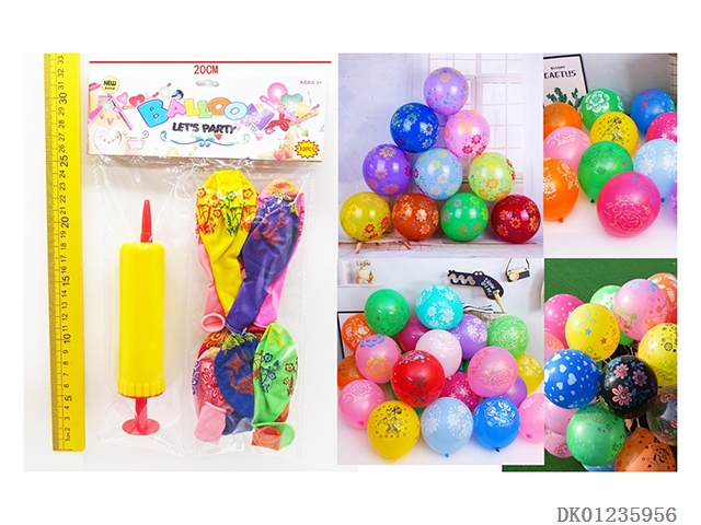 10 Full flower patterned balloons and 1 inflator