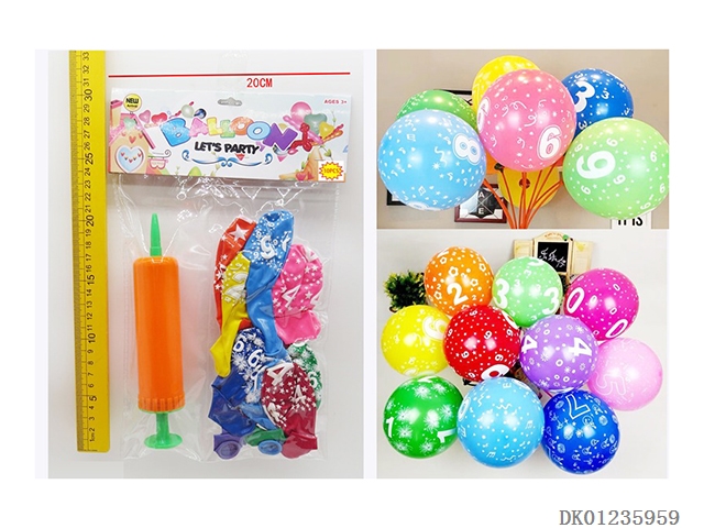 10 Number patterned balloons and 1 pump