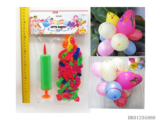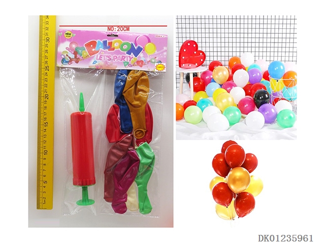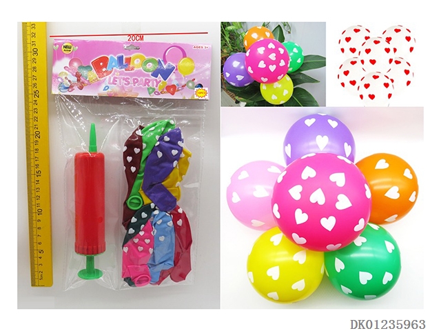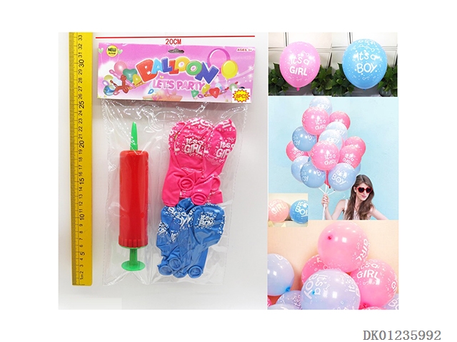 8 Boys and girls patterned balloons and 1 pump