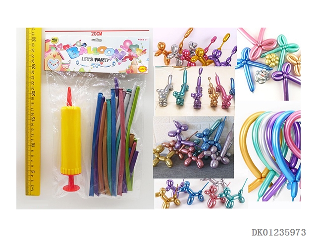 16 Metal colored long balloons and 1 pump