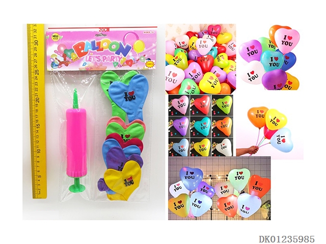 10 Heart-shaped ilovei patterned balloons and inflators