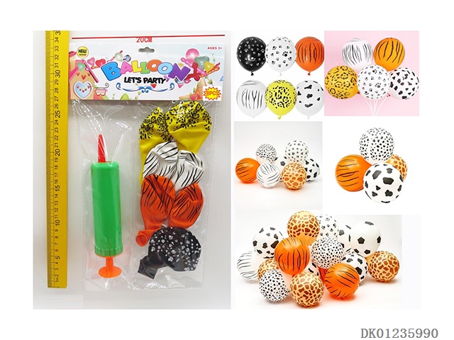 8 Animal patterned balloons and 1 pump
