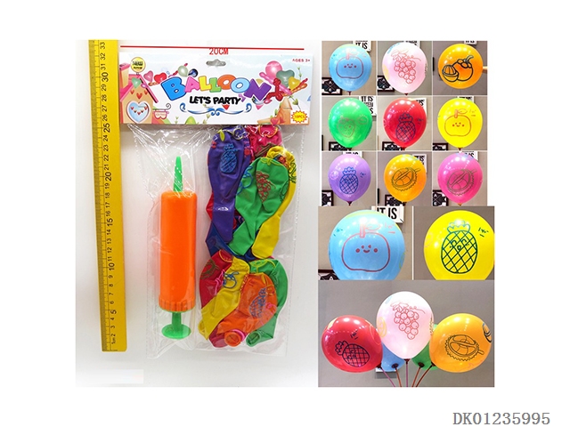10 Fruit patterned balloons and 1 pump