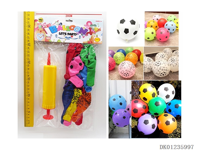 10 Football patterned balloons and 1 pump