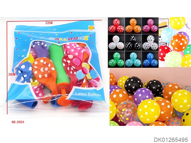 12 Dot patterned balloons and 1 pump