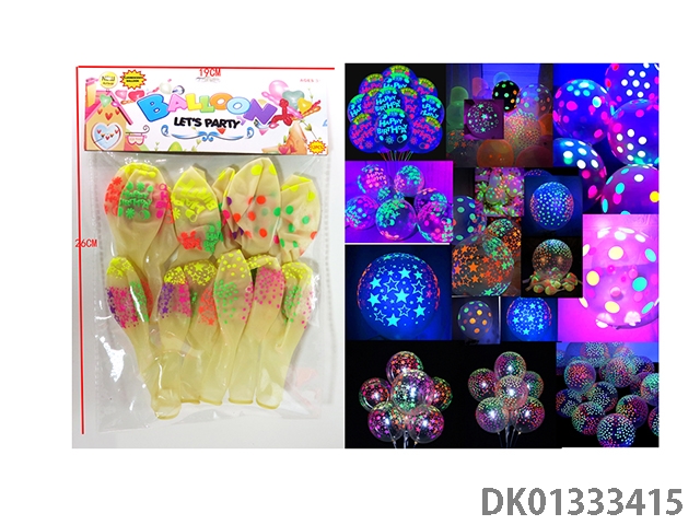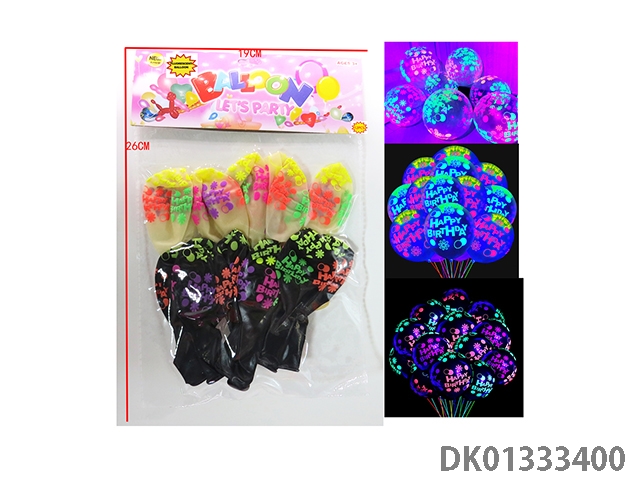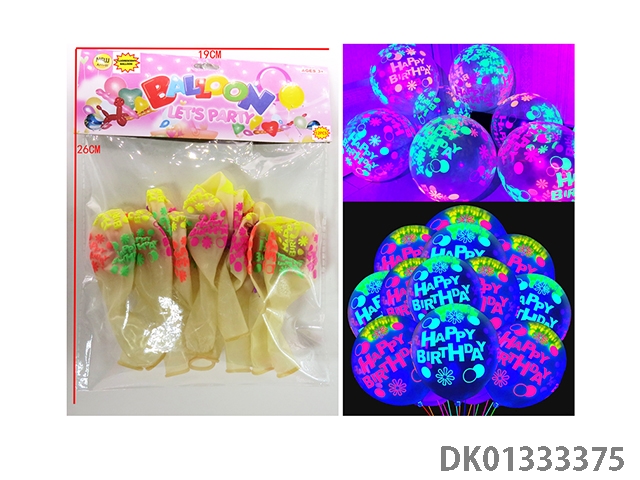2 Mixed balloons with 12 fluorescent birthday patterns