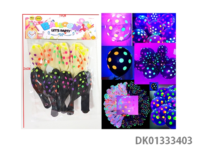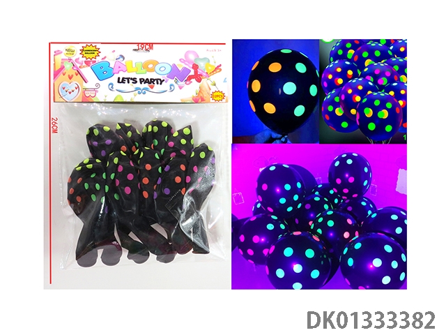 12 Fluorescent black dot patterned balloons