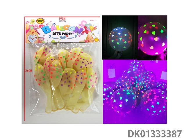 12 Fluorescent transparent heart-shaped patterned balloons