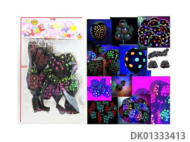 4 Types of mixed 12 fluorescent black patterned balloons