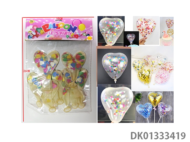 12 Transparent sequin heart-shaped patterned balloons