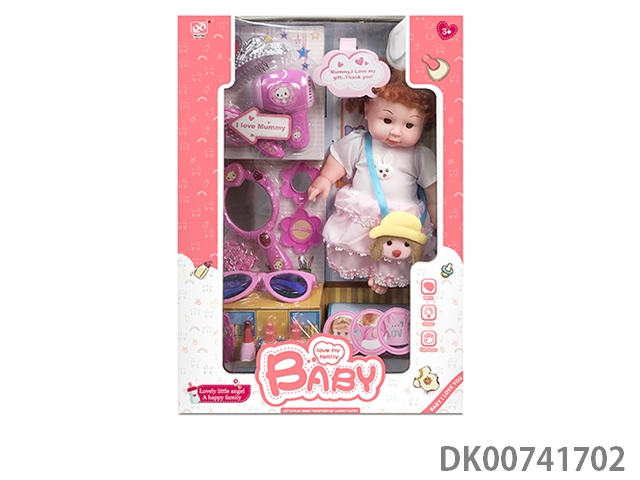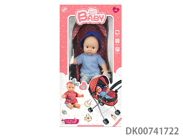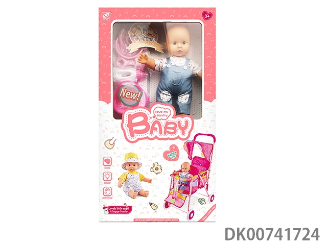 12 Inch cotton body enamel doll and baby accessories and storage trolley