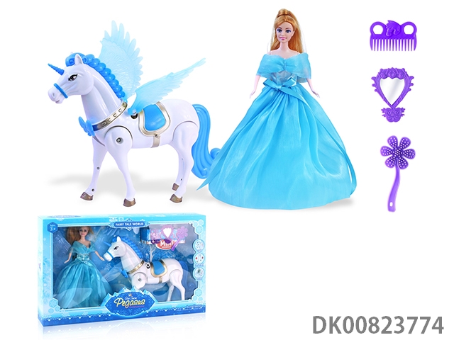 Electric big pegasus (blue) and lights, music and 11.5-inch evening princess and accessories