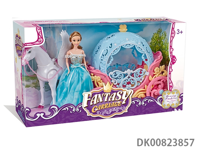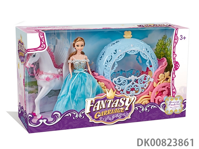 Manual pegasus and round pumpkin car and 29cm doll (without any electric function)