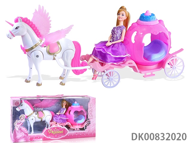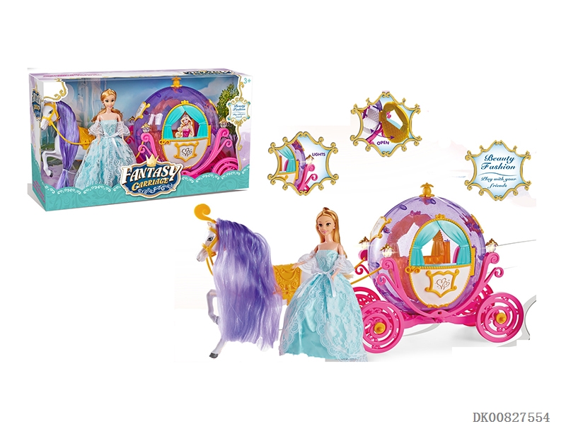 Static horse and pumpkin cart and 29cm doll pumpkin cart 2 color flash