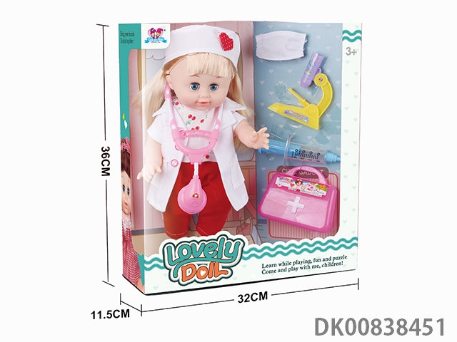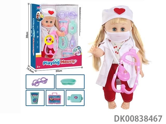 15 Inch singing girl’s simulated doctor suit and medical equipment