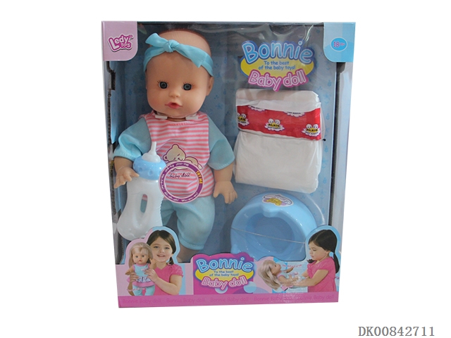 16 Inch 12 sound drinking water pee girl and shopping cart and fruit and milk bottle