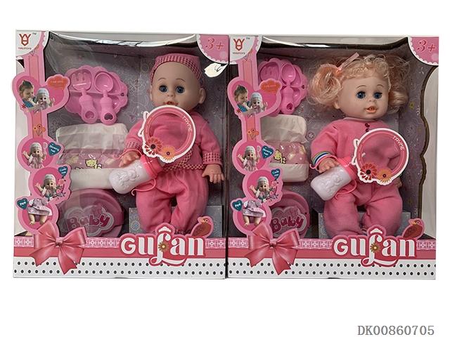 14 Inch doll (dinner plate, diaper, stool basin, milk bottle and 4-tone ic)
