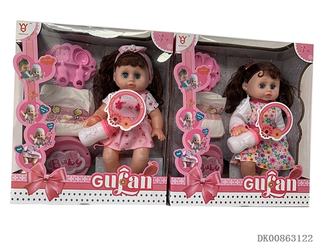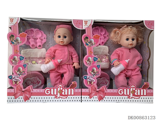 14 Inch baby girl (dinner plate, diaper, stool basin, milk bottle and light music ic)