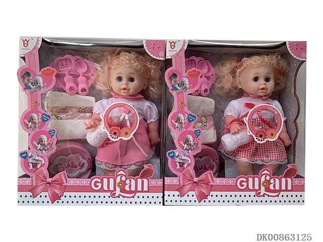 14 Inch baby girl (dinner plate, diaper, stool basin, milk bottle and 4-tone ic)
