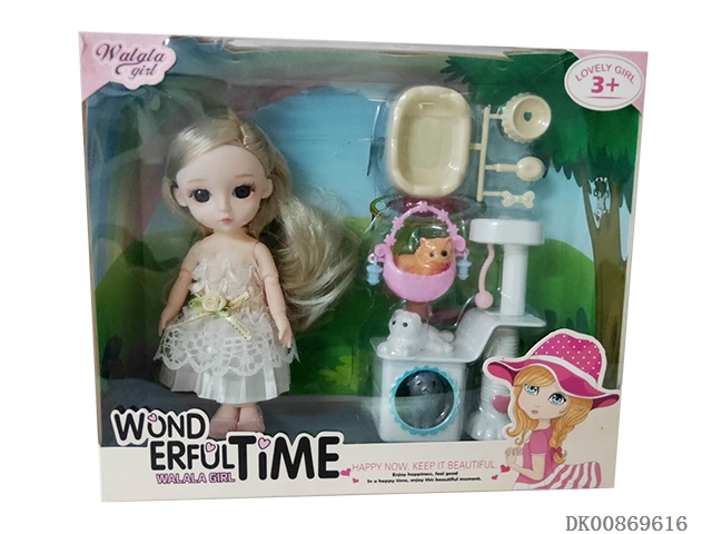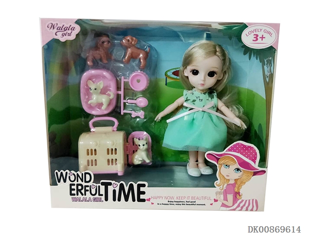 6-Inch doll with 13 joints and dog cage suit