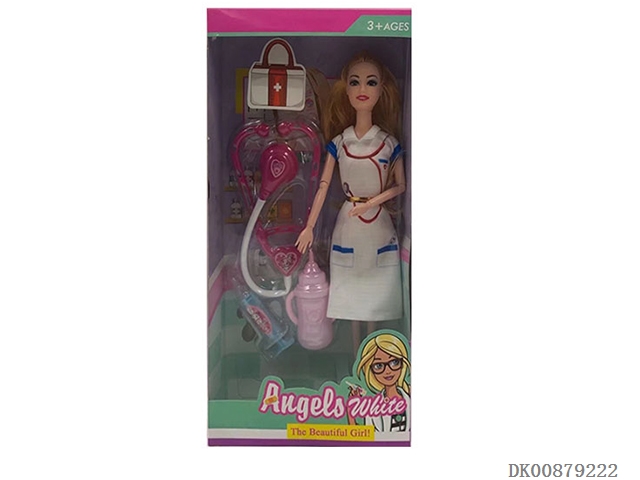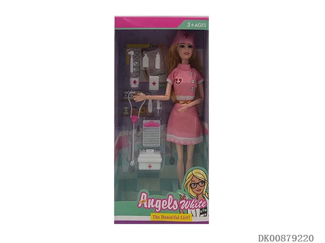 High grade 11.5-inch solid 9-joint long hair short skirt female nurse with medical equipment blister